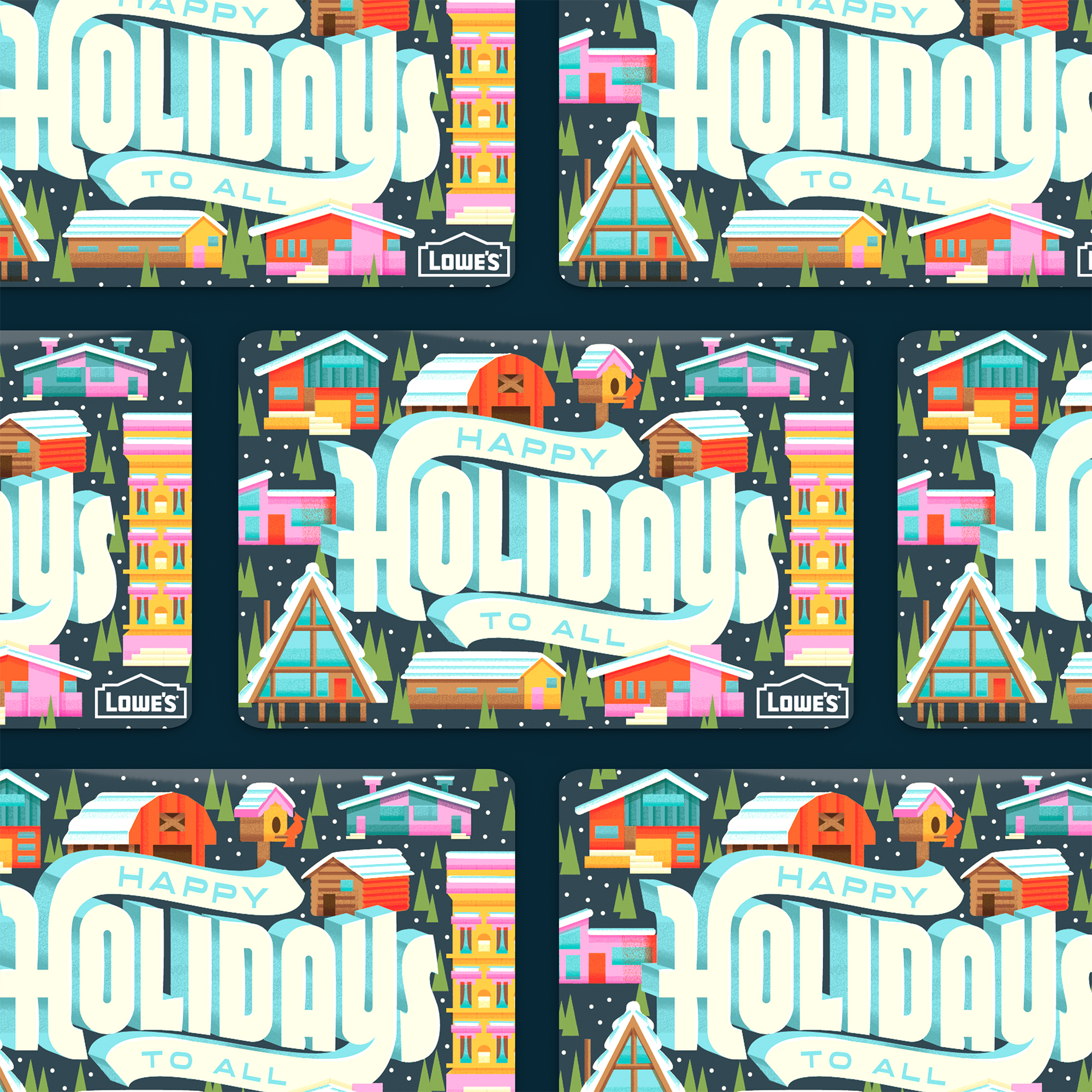 When approached to help design a holiday gift card for Lowes in 2020, we wanted the final to speak to home dwellers of all shapes and sizes.